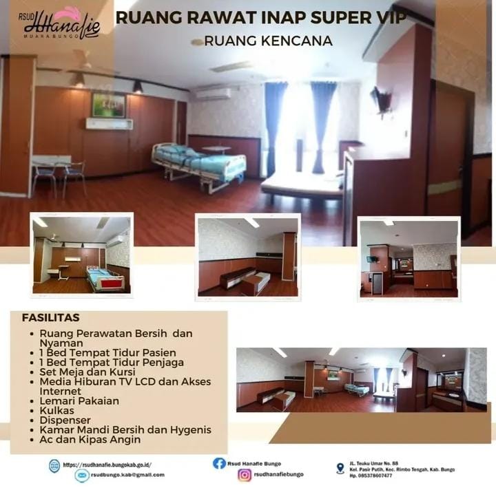 Rawat Inap Super VIP Kencana adalah unit pelayanan rawat inap dengan fasilitas eksklusif dan kenyamanan tinggi yang menyediakan pelayanan perawatan medis komprehensif, privasi maksimal, serta fasilitas penunjang premium untuk mendukung proses penyembuhan pasien.