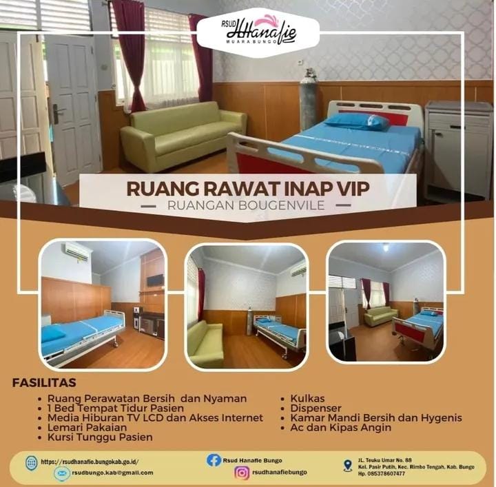 Rawat Inap VIP Bougenvile adalah unit pelayanan rawat inap yang menyediakan perawatan medis dengan fasilitas nyaman dan privat, didukung pelayanan profesional untuk menunjang keselamatan dan kenyamanan pasien selama masa perawatan.